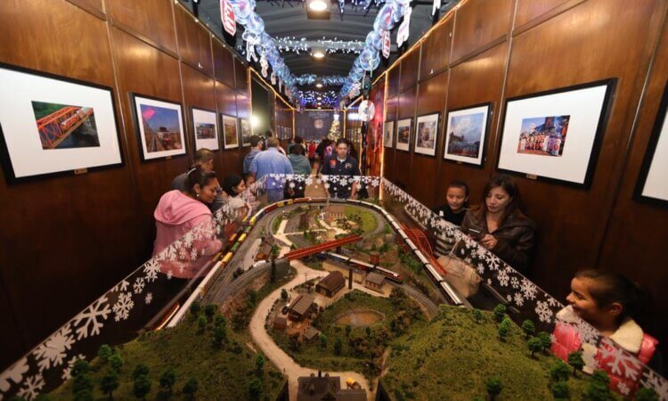 Los asistentes pudieron subir a los furgones decorado con adornos y diversas fotografías, antigüedades, una maqueta de tren, donde los padres de familia y sus hijos se tomaron fotos del recuerdo, además había una plataforma que representa el nacimiento del Niño Dios.