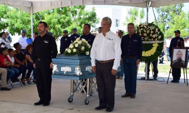 Durante la despedida con honores del Policía Estatal “A”, Alonso Martín “N”, se