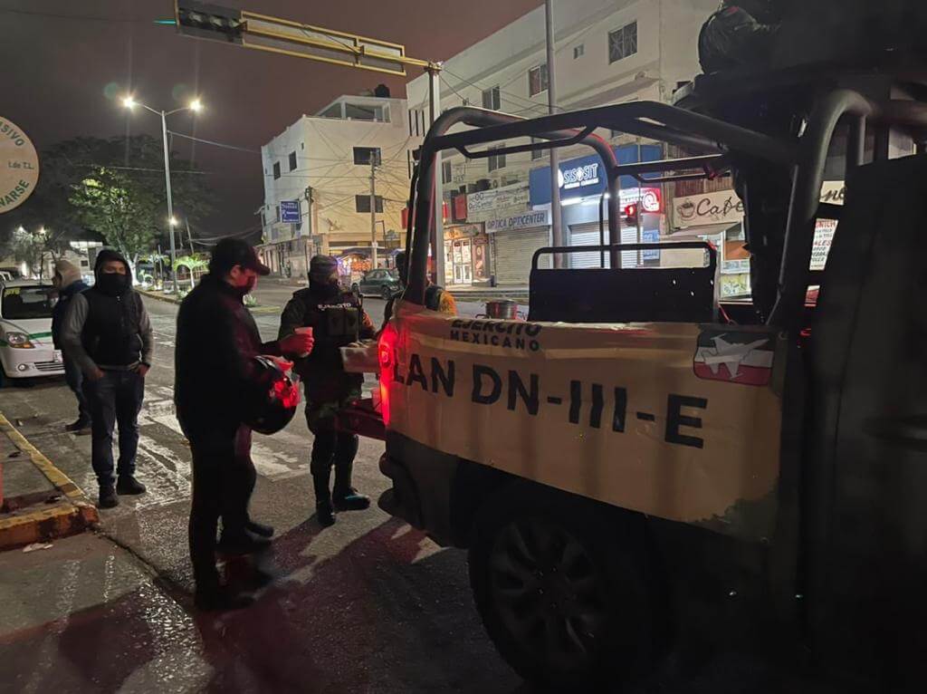 La Secretaría de la Defensa Nacional informó que a consecuencia de las bajas temperaturas, en el Estado de Tamaulipas se aplicó la fase preventiva del Plan DN-III-E, en donde personal militar llevó a cabo la repartición de bebidas calientes y pan a las personas más desprotegidas o de escasos recursos.
