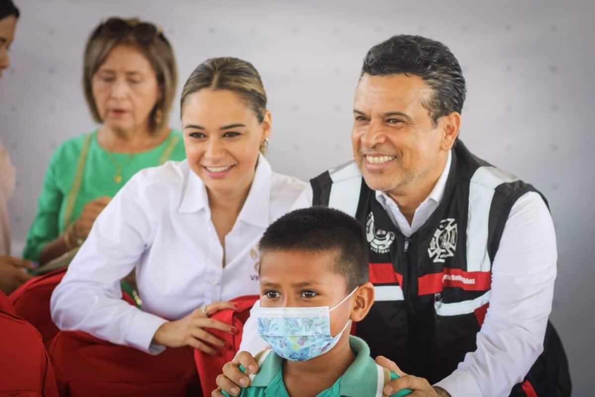 Cd. Victoria, Tamaulipas. – En apoyo a la educación y economía de padres de familia, la presidenta del Sistema DIF Victoria, Lucía Rodríguez de Gattás y el alcalde Eduardo Gattás Báez, entregaron mochilas escolares a alumnos de la escuela de «Mártires de la Revolución» del ejido Congregación Caballeros.